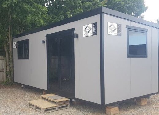 7.2m x 3m Portable Building, Galv steel base with lifting lugs Sandstone grey 75mm bondor panel